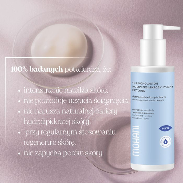 Nawilżająca dermoemulsja do mycia twarzy z glukonolaktonem, ektoiną i kompleksem mikrobiotycznym