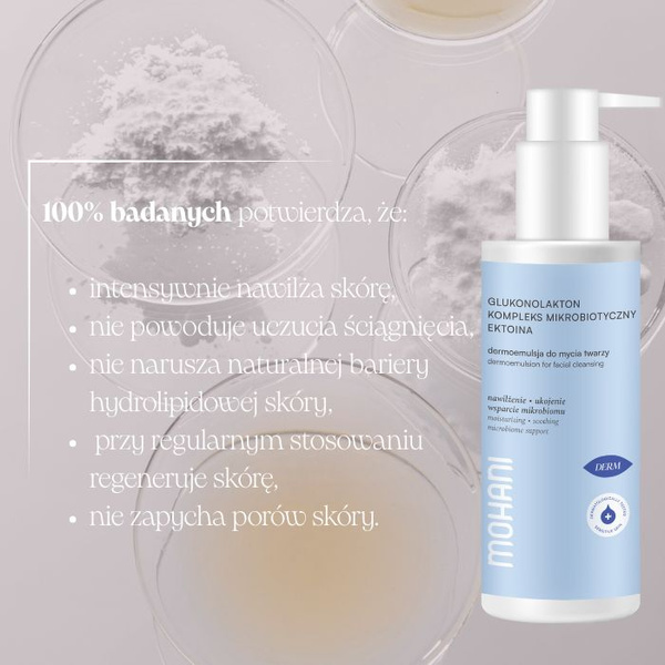 Nawilżająca dermoemulsja do mycia twarzy z glukonolaktonem, ektoiną i kompleksem mikrobiotycznym