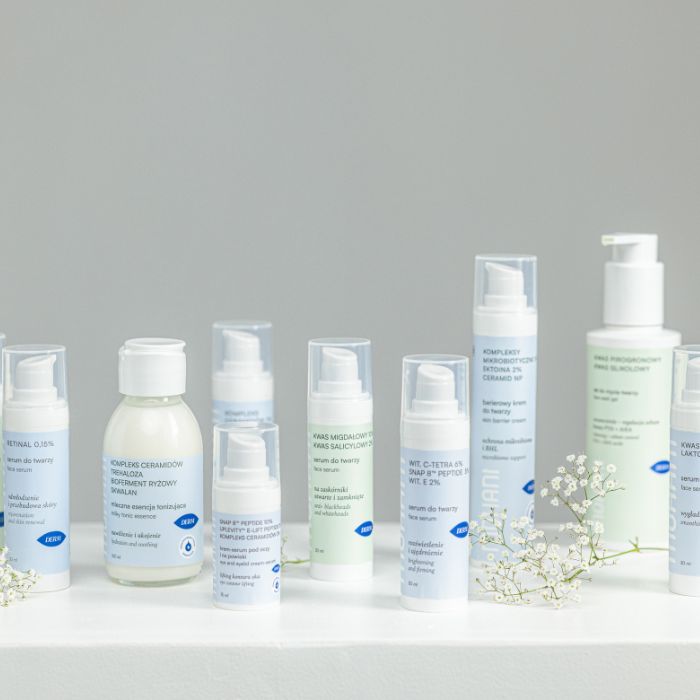Peptydy od kilku lat nie schodzą z listy najskuteczniejszych składników aktywnych w kosmetykach przeciwzmarszczkowych. W nowoczesnych recepturach znajdziemy dziś m.in. neuropeptydy i tetrapeptydy o precyzyjnym działaniu, które w sposób bezpieczny i nieinwazyjny wspomagają redukcję zmarszczek, poprawę jędrności oraz odbudowę skóry. Wśród nich wyróżniają się SNAP-8™ i Uplevity™ e-Lift - dwa przełomowe składniki aktywne, które znajdziesz w najnowszych dermokosmetykach Mohani. Dlaczego warto sięgać po peptydy w pielęgnacji?